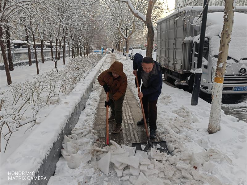 公司全体员工顶风冒雪,准时到达指定地点集合,在公司领导的带领下,全体员工发扬不怕苦、不怕累的精神,挥舞着铁锹、扫帚等工具,对道路、人行道、公交站台等区域的积雪进行集中清理。经过数小时的连续奋战,公司负责区域内的积雪被清理干净,道路恢复了畅通,为市民安全出行提供了有力保障。公司员工们用实际行动诠释了“奉献、友爱、互助、进步”的志愿精神,展现了青州水建人高度的社会责任感和良好的精神风貌。