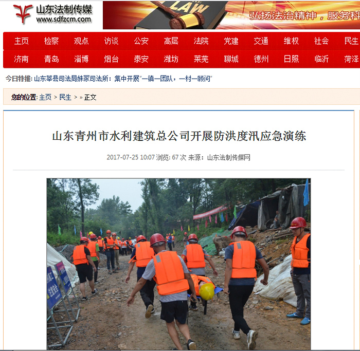随着主汛期的到来,7月19日上午,青州市水利建筑总公司在山东省利用亚行贷款地下水漏斗区域综合治理示范项目青州市仁河、黑虎山、七一水库三库串联向城区供水工程项目部组织实施了防汛演练,青州市水利局、监理公司及总公司领导亲临现场参观指导。