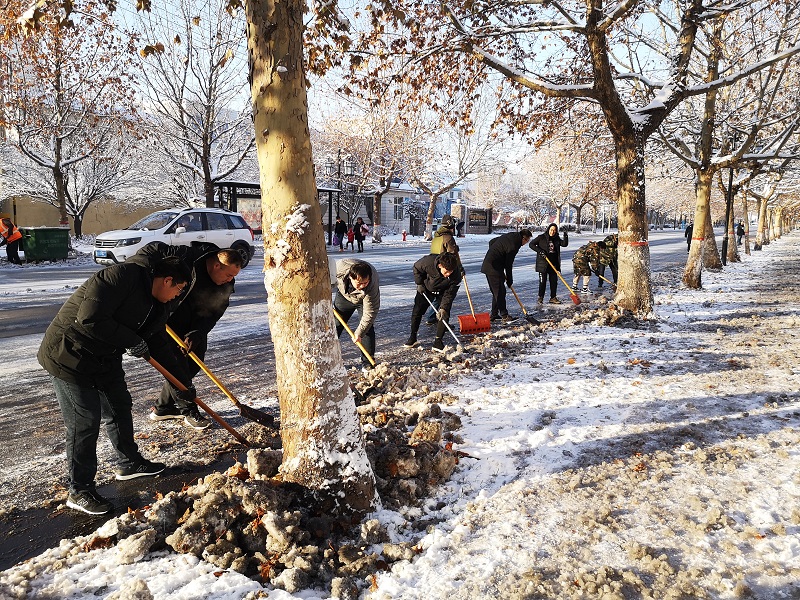 经过两个多小时的奋战,扫雪任务圆满完成,虽然室外气温依然很低,但大家的热情和团结的力量让这个冬日变得不再冷。